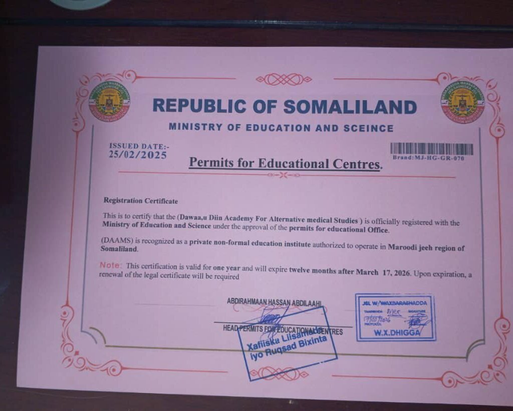 Waxaan bixinaa koorsooyin Herbal Medicine ah laga bilaabo heer Diploma ilaa Degree.